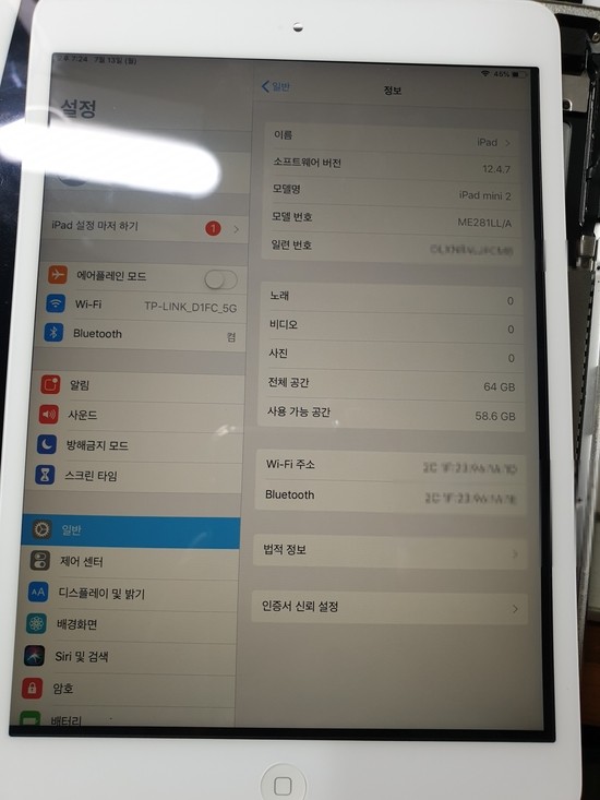 포스팅할 내용은 아이패드 미니2 A1489 64G