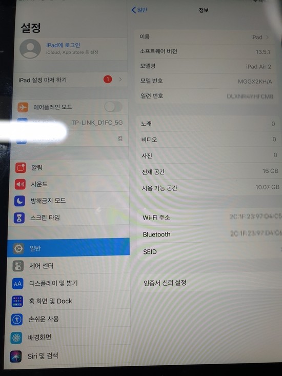 아이패드 기기활성화 에어2 16G wifi a1567