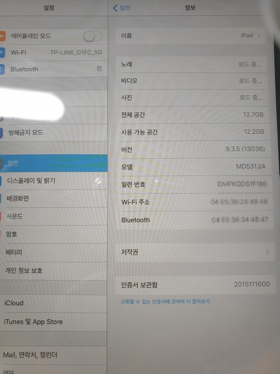 아이패드 미니1 wifi 16g 기기활성화,
