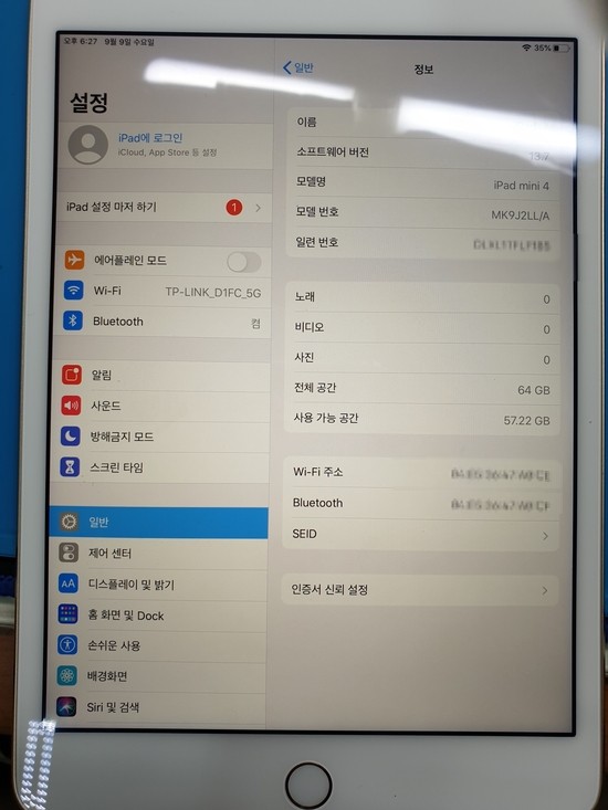 아이패드 기기활성화, 아이패드 미니4 wifi 64g a1538 기기활성화,아이패드 클라우드락, A1538 기기활성화해제, 애플아이디잠김해제,아이패드 수리점