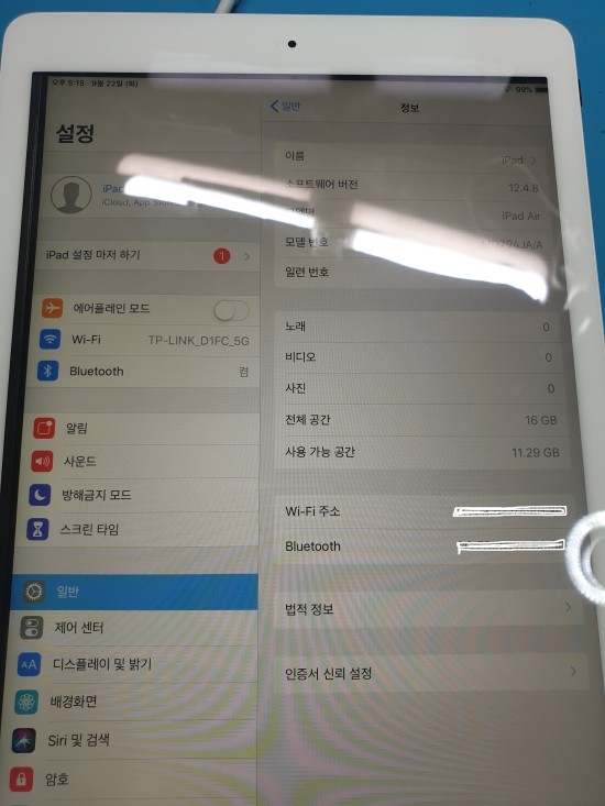 아이패드 에어 기기활성화, 아이클라우드락, A1474 아이패드 에어1 16G 기기활성화해제, 은평구 아이패드 택배 수리점