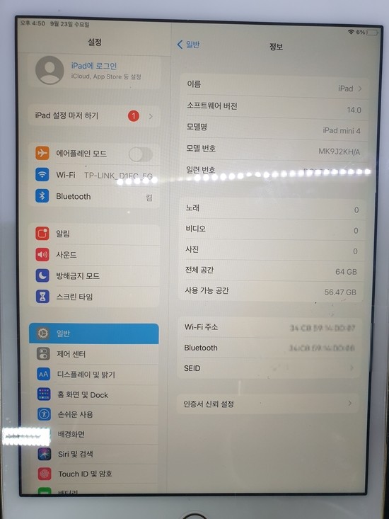 아이패드 미니4 A1538 wifi 64G 기기활성화할수 없음으로 입고 !!!