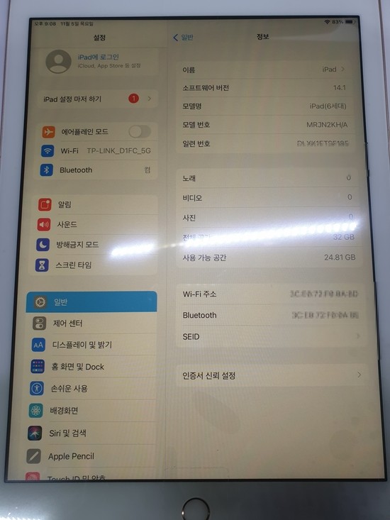 아이패드 6세대 A1893 기기활성화/ 아이클라우드락 해제되어 정상적으로
